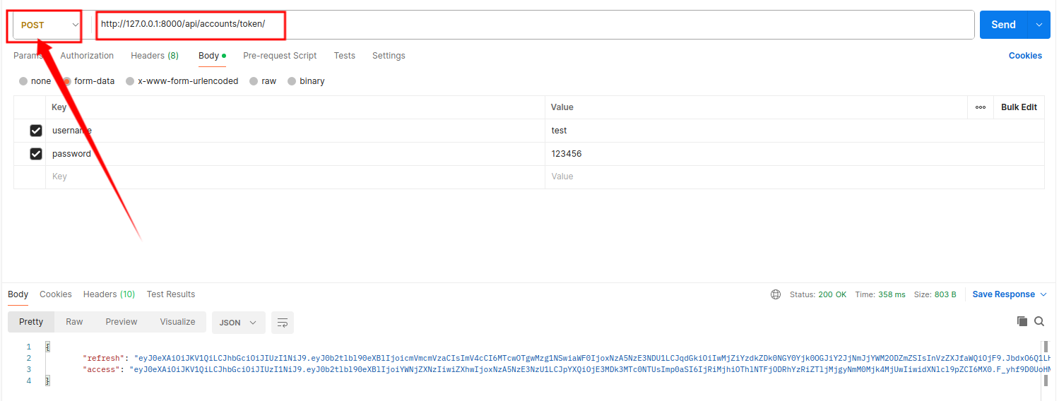 一定是POST方法请求 /token/这个接口;参数是username 和 password