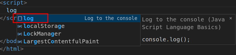 在控制台输出信息: 输入log 点击回车 即是 console.log();